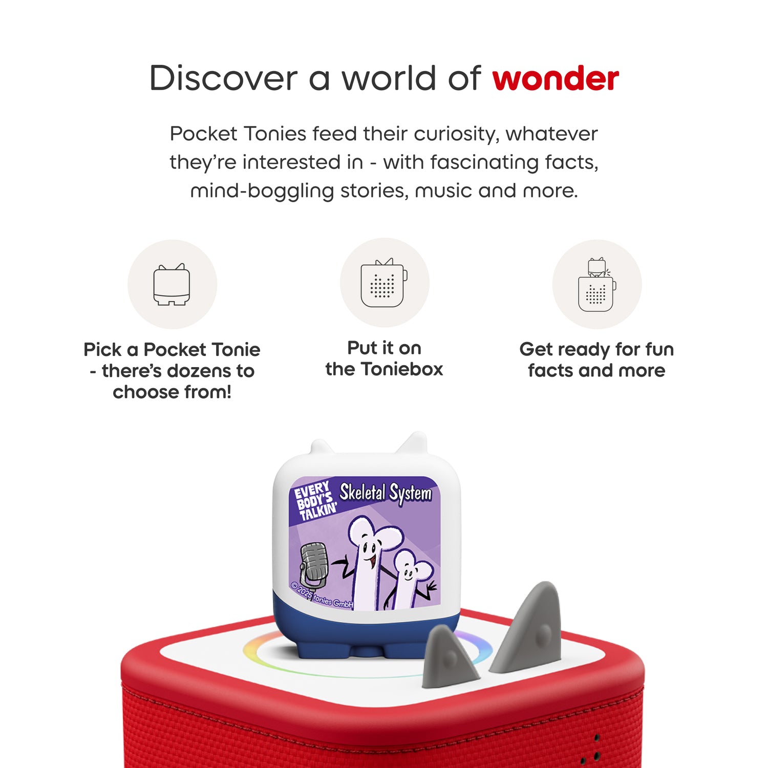 silliness that helps kids learn how their bodies work. All curious kids need to do is pop this Pocket Tonie on their Toniebox to get to know their bodies.