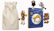 The figures and book will arrive in a Drawstring Cotton Bag with tag.
