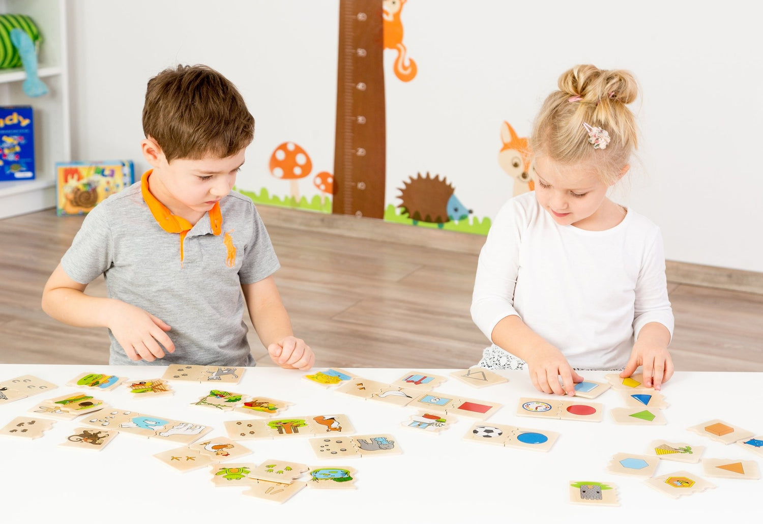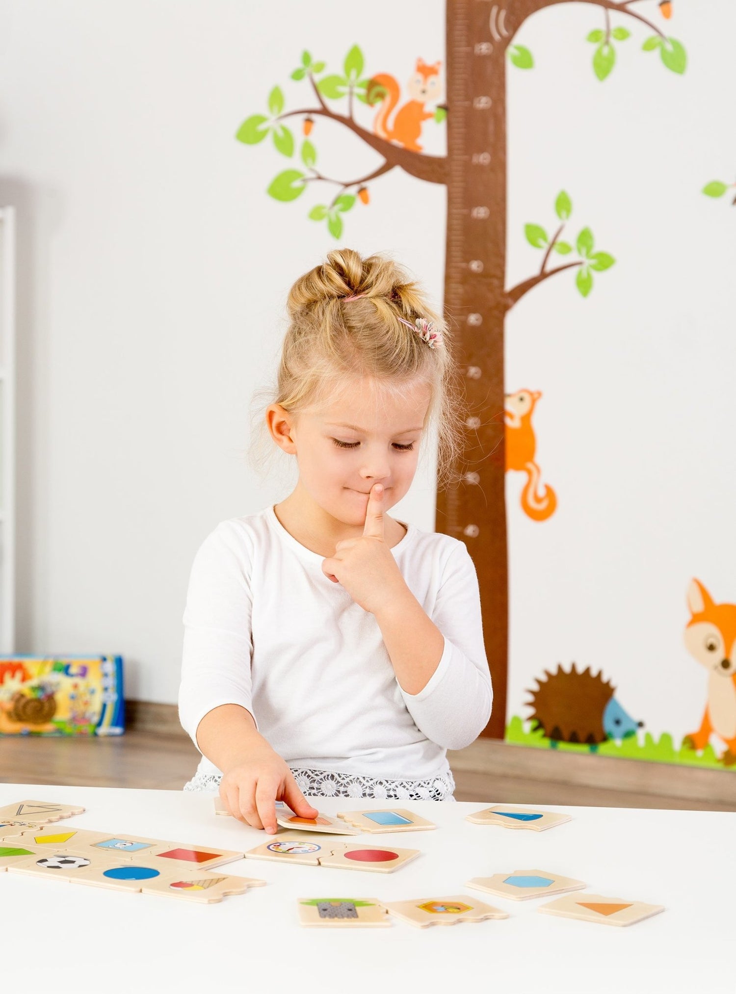 Learning by doing and playing! Expansion of vocabulary or spatial orientation, recognition of differences or solving problems – the focus of Cognito is mainly on the fun of playing for little discoverers. The four boxes foster mental processes in children and help to develop the brain structure. With the aid of easy self-checking, the children are able to play the game on their own, as there is only the possibility of putting together one combination (of two or three cards.)