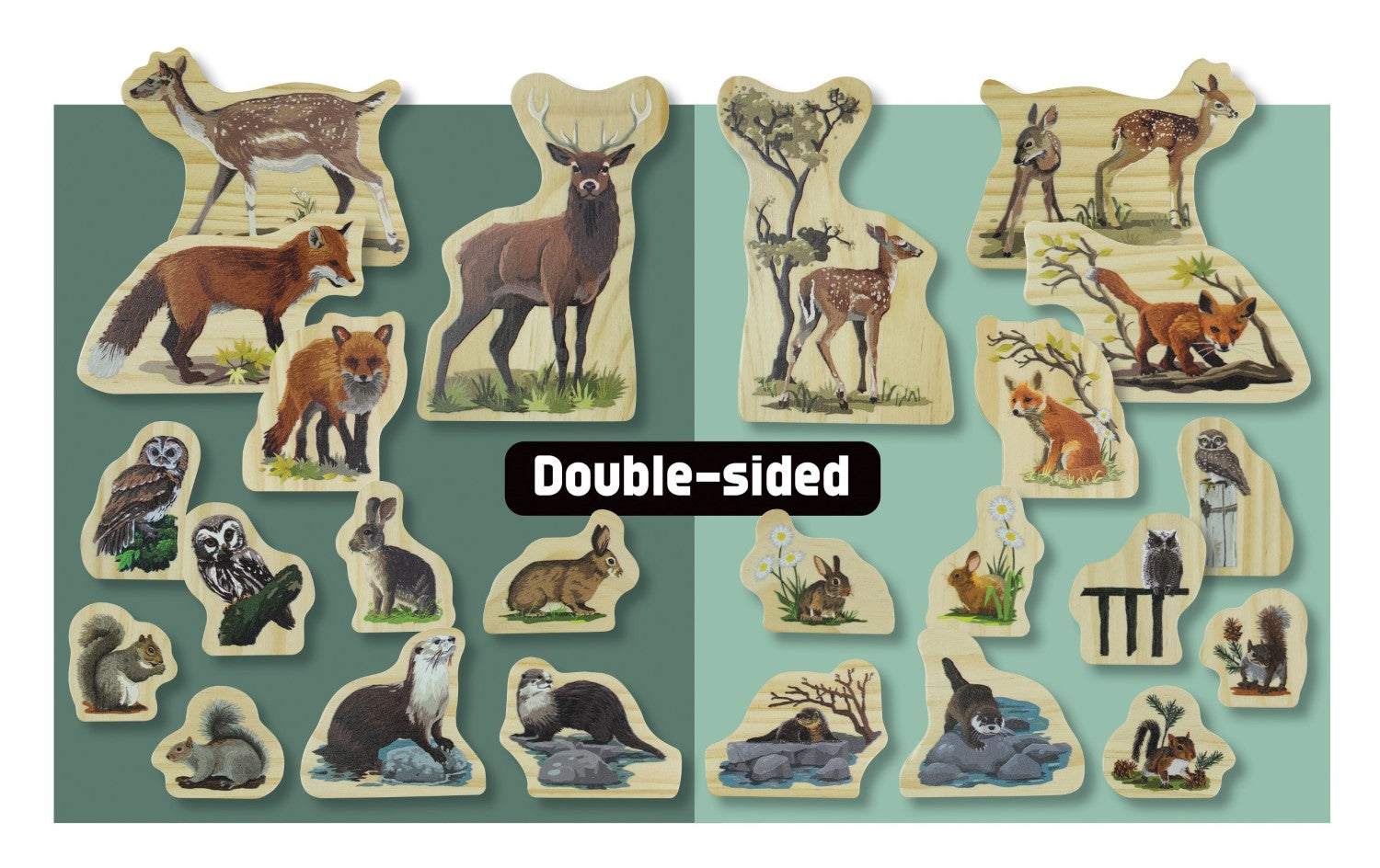 Introduce little ones to the magic of the natural world with this exquisitely illustrated set of 12 double-sided wooden woodland animals. Thoughtfully designed to inspire storytelling, imaginative play and early science learning, this beautiful collection brings the forest to life. 🌿✨