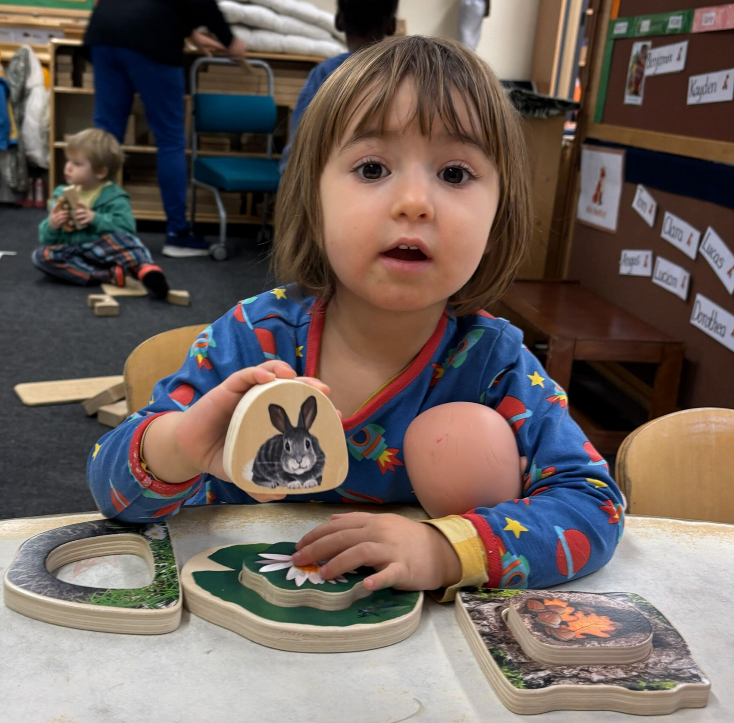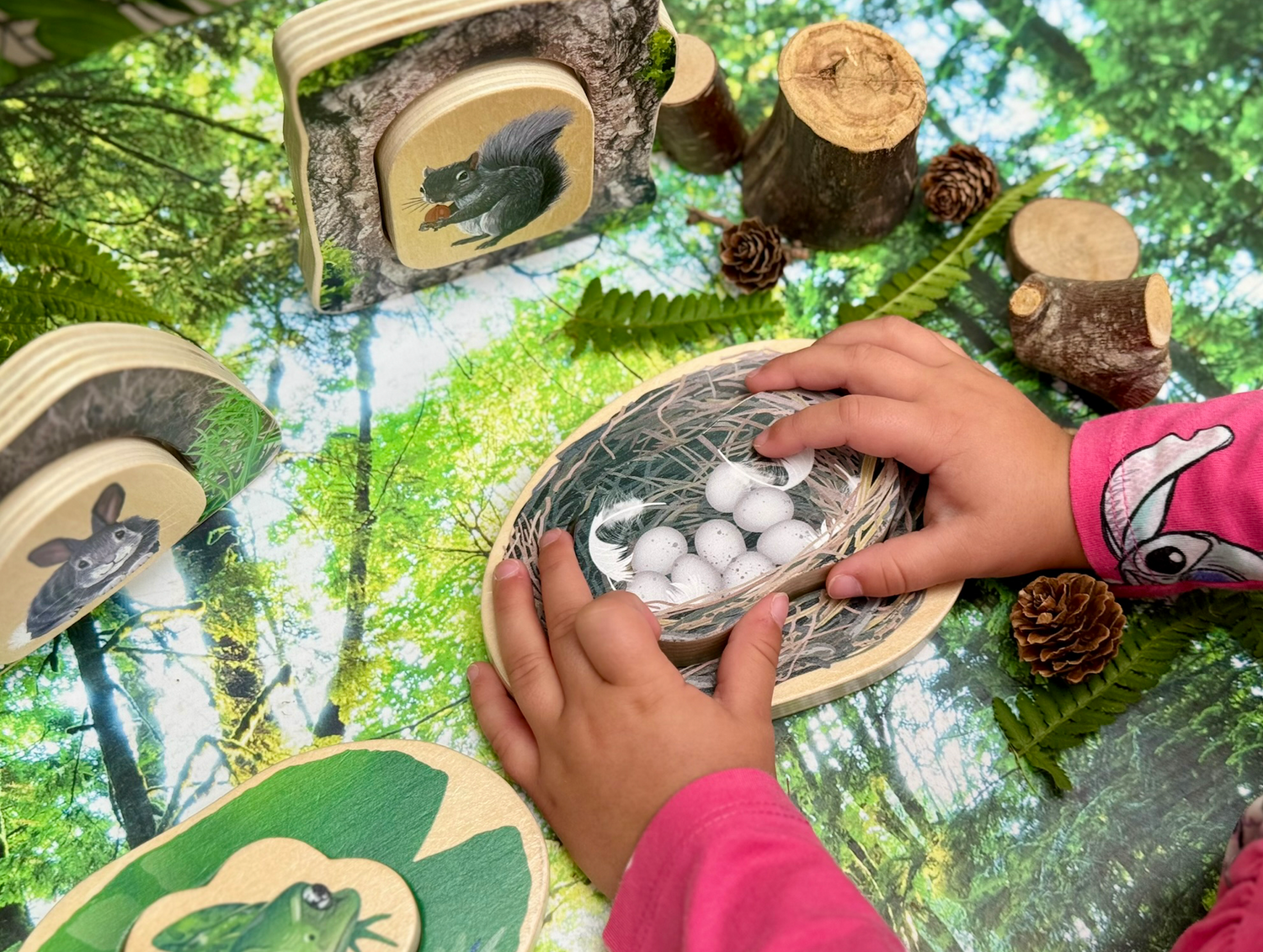 Perfect for hide-and-seek fun, the chunky wooden pieces can also stand upright, encouraging open-ended storytelling, imaginative play and early conversations about the natural world.